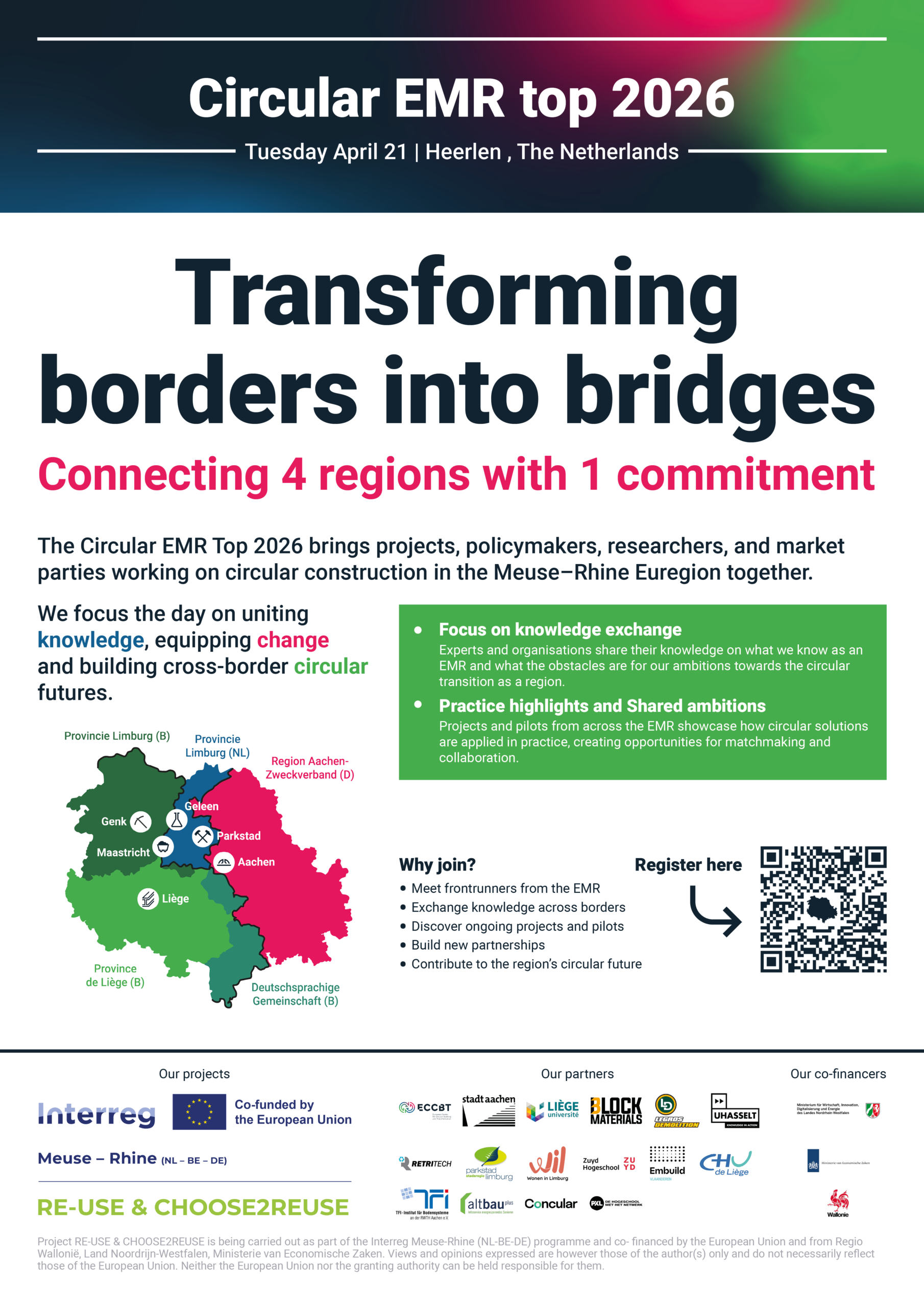 We are very happy to announce the Circular EMR Top 2026. Parties from across the Meuse–Rhine Euregion come together to strengthen circular construction in the built environment. On this inspiring day, we will bring together knowledge, practice, and policy. We will share what is already happening in the EMR, learn from real projects and pilots, and […]